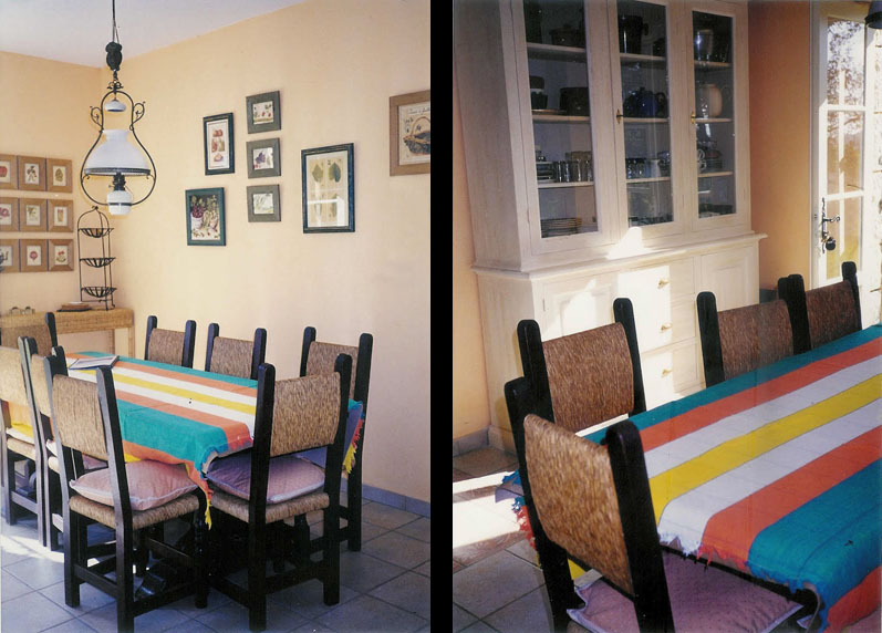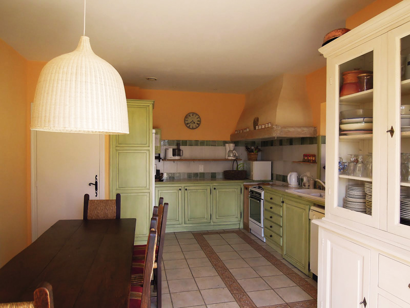 Cuisine Réfrigérateur Cuisinière Micro-ondes Lave-vaisselle Hotte Rangements Évier double vasque Grande table à déjeuner